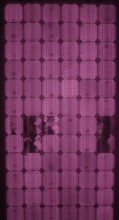 Das ist ein Messverfahren, mit dem man in die Zellen eines Solarmoduls sehen kann. Man erkennt Defekte, welche die Leistung eines Solarmoduls beeinflussen.